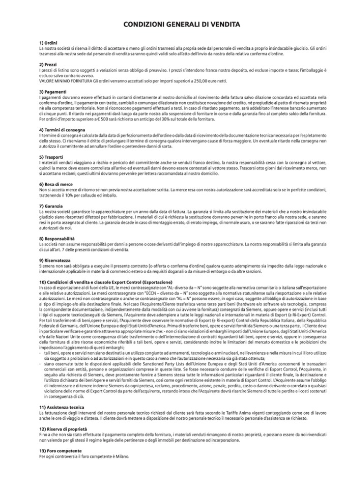 CONDIZIONI GENERALI DI VENDITA 1. Le presenti condizioni ...